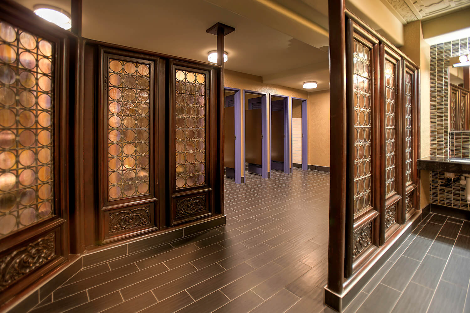 Weaver Architects' relationship with the 5th Avenue Theatre dates back to the firms' founding and has involved a myriad of projects. The opened stage trap in 2007 and orchestra pit lift in 2010 have provided increased efficiency and production capability for the theatre. "Downstairs at the 5th" - a built-out rehearsal and retail space on the concourse level of the Skinner Building that opened in 2008 - has been critical for production and education operations of the theatre. The 2016 lobby renovations included new custom carpet, refreshed restrooms, and new audio facilities such as a sound room and in-theatre sound board set-up and was accomplished in collaboration with Robin Dalton Design, LLC.