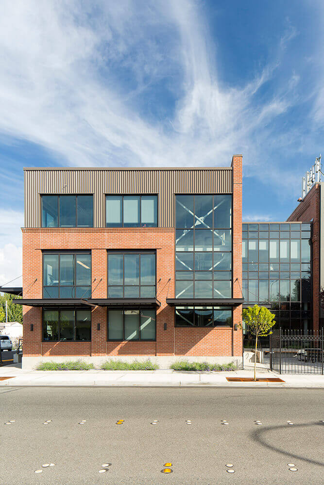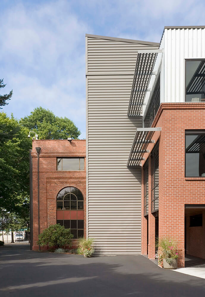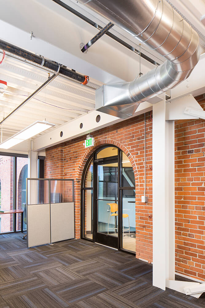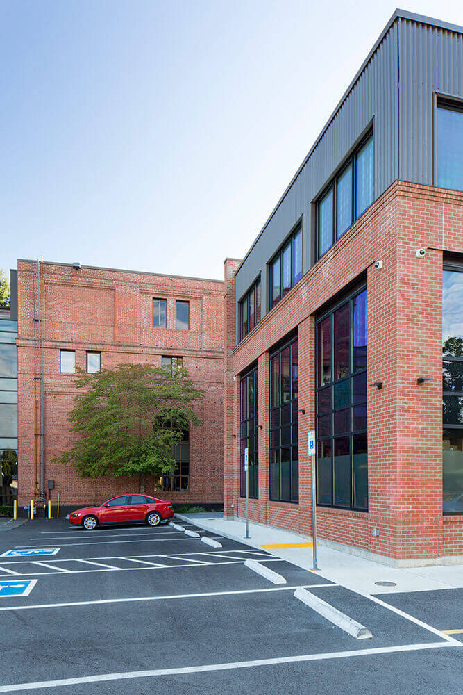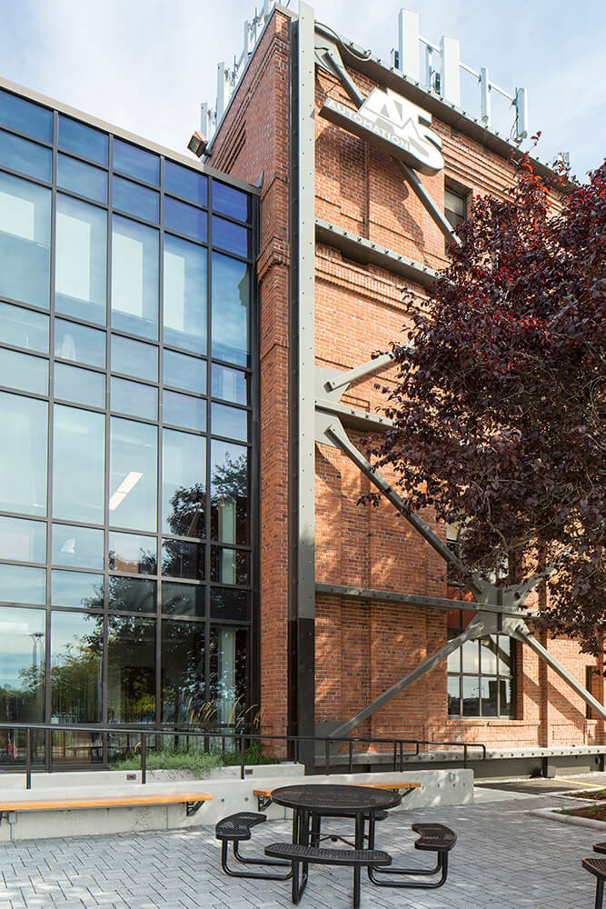 Weaver Architects' client ATS Automation is located in a historic Renton building that was built in 1918. The brick building originally housed an electrical substation for the Milwaukee Railroad, and was converted into an office building in 1977. The initial expansion work included a 7,400-square-foot addition as well as seismic upgrades to the existing building. A new elevator was added to serve all four floors, and accessible restrooms were added to each floor. The second 10,000-square-foot addition, adjacent to the north side of the building, included additional office space, a fitness room, restrooms, and supply distribution space.