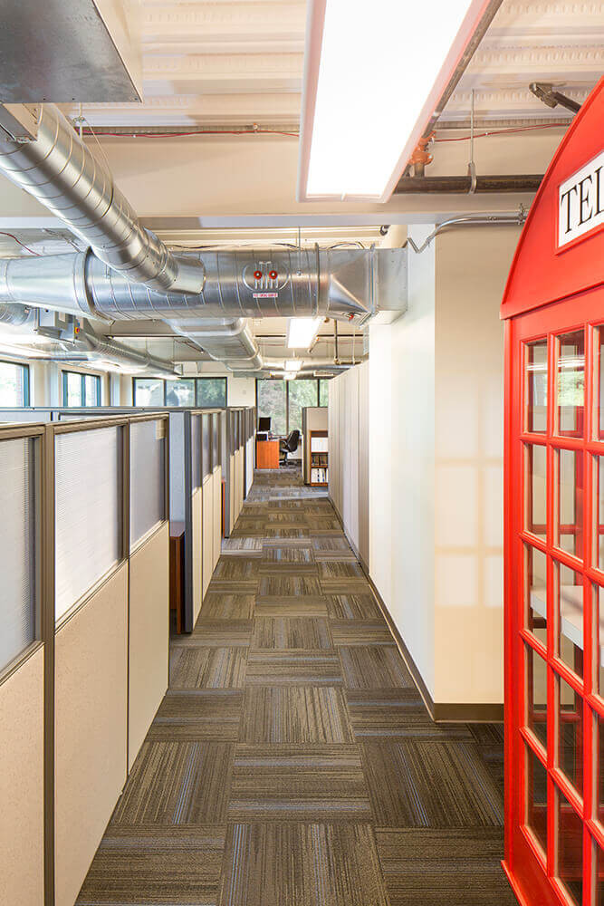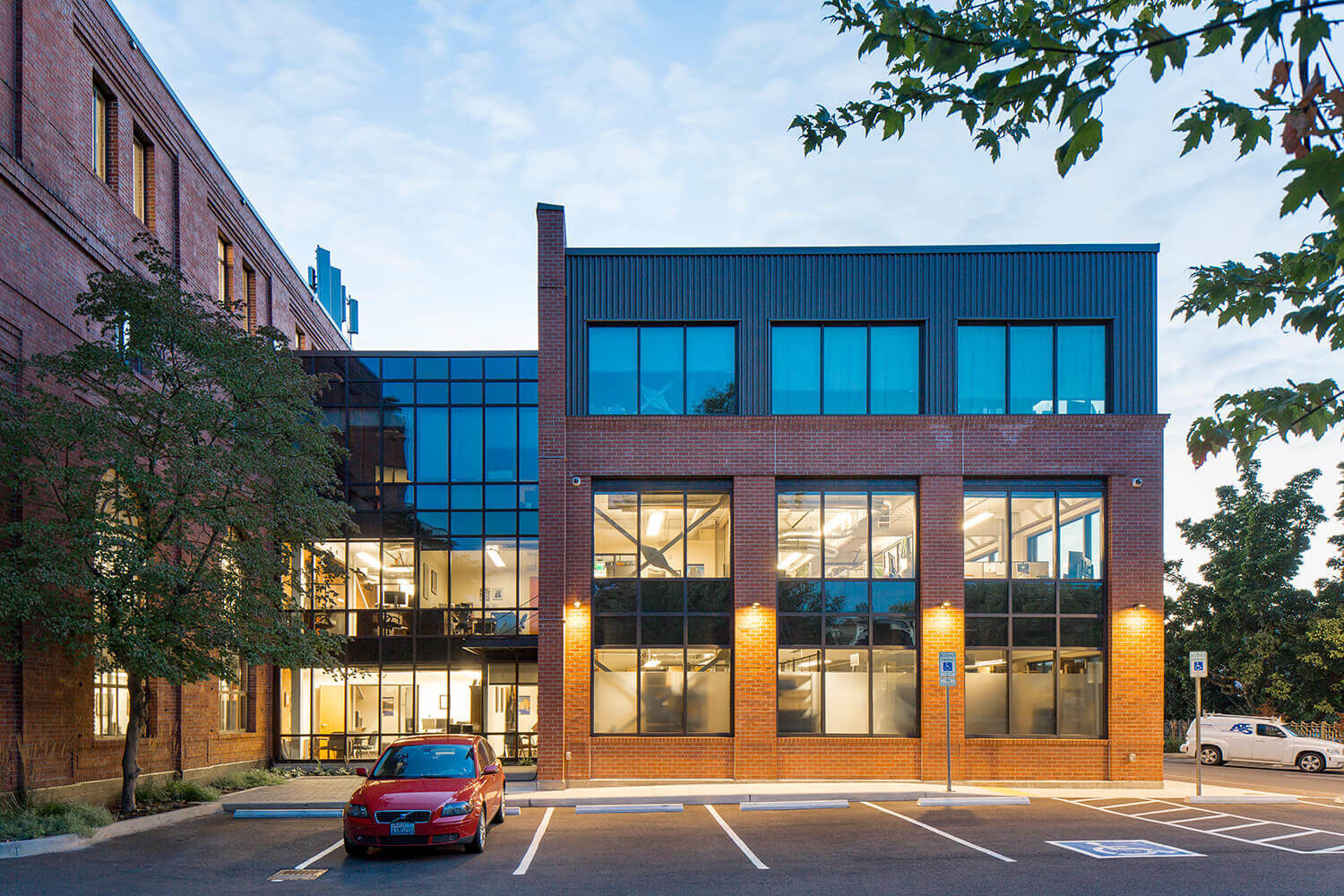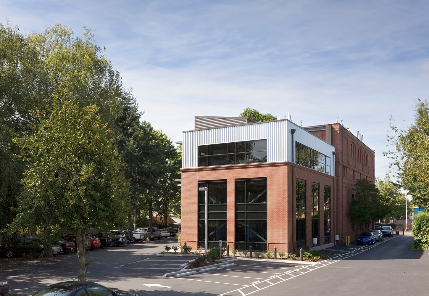 Weaver Architects' client ATS Automation is located in a historic Renton building that was built in 1918. The brick building originally housed an electrical substation for the Milwaukee Railroad, and was converted into an office building in 1977. The initial expansion work included a 7,400-square-foot addition as well as seismic upgrades to the existing building. A new elevator was added to serve all four floors, and accessible restrooms were added to each floor. The second 10,000-square-foot addition, adjacent to the north side of the building, included additional office space, a fitness room, restrooms, and supply distribution space.