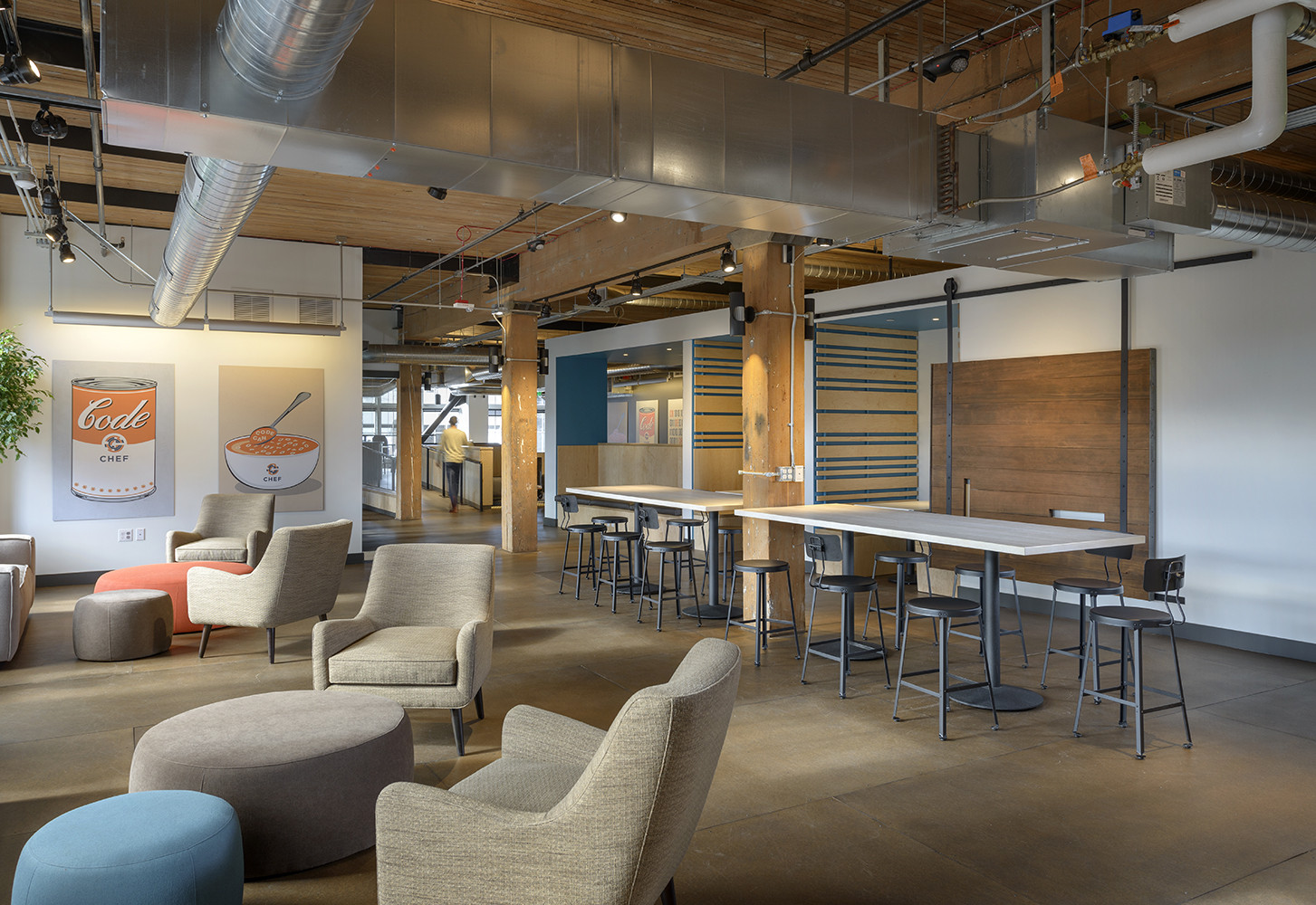 Chef's Pioneer Square home required a space that fostered creativity and integrated the infrastructure necessary for the firm's technology operations. The resulting work environment is extremely versatile and encourages flexible thinking. Mobile desking with moveable whiteboard sheets allows the office space to evolve in real-time to adapt to the needs of individuals and teams. This design created the ultimate “un-office”: one that is suited to blur the lines between work place and social space, and one that is capable of promoting collaboration and innovation.