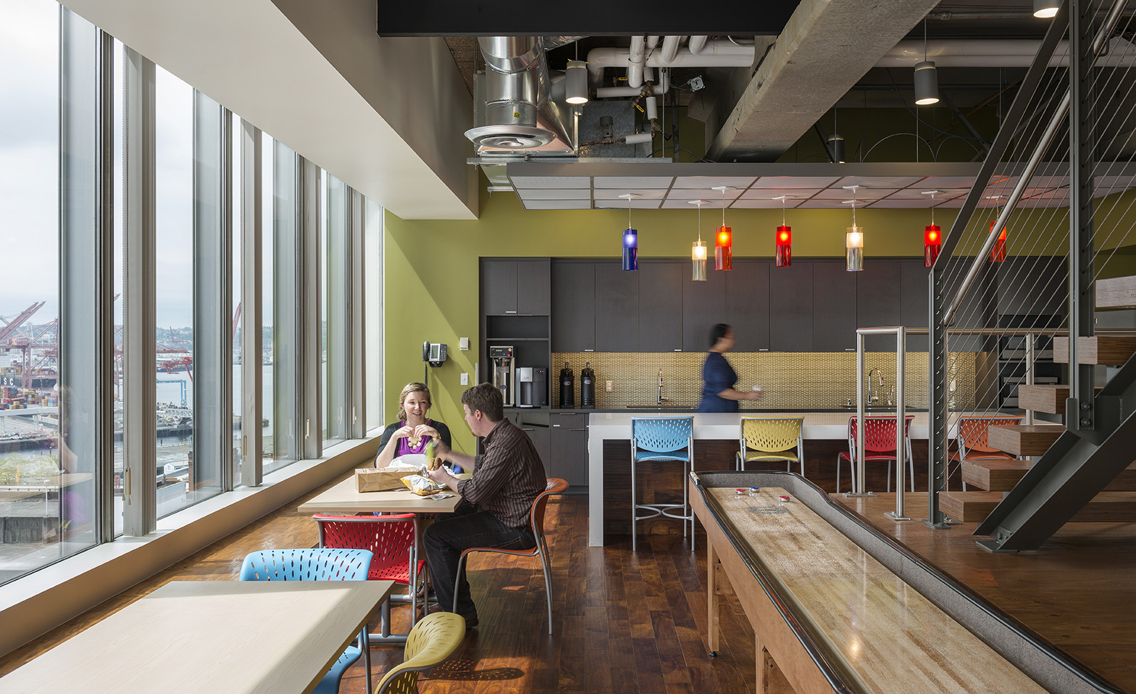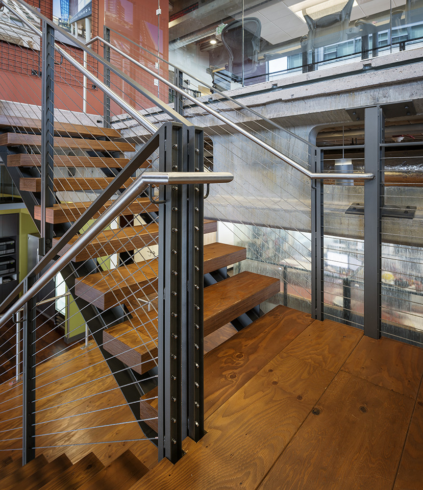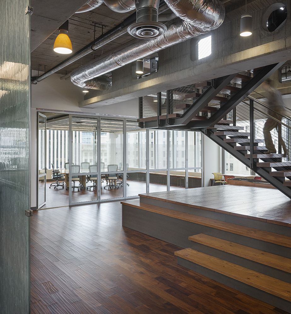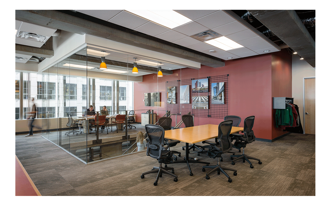The building of this engineering office project was distinctive for its 70-foot-clear spans of pre-stressed concrete beams, a condition more likely found on freeway overpasses than inside commercial office buildings. Our design highlighted this unique concrete structure and emphasized its industrial feel in order to give the client a space aligned with their professional art. Warm contemporary materials were used to accentuate the depth and richness of the structure's existing modern colors and textures. The open office environment - possessing a balance between the past and the present - provides an inspiring workspace for its employees to thrive in.