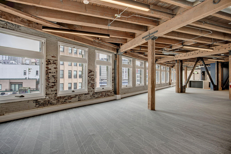 The Masin Building repositioning the existing historic structure to appeal to tech users who were moving into the Pioneer Square neighborhood. The interiors were stripped of interior finishes exposing the historic brick, heavy timber structure and car-decking floors. The exposed interiors and new structural elements are a raw contrast to the new, clean, modern interior build-out ready for tenant move-in.