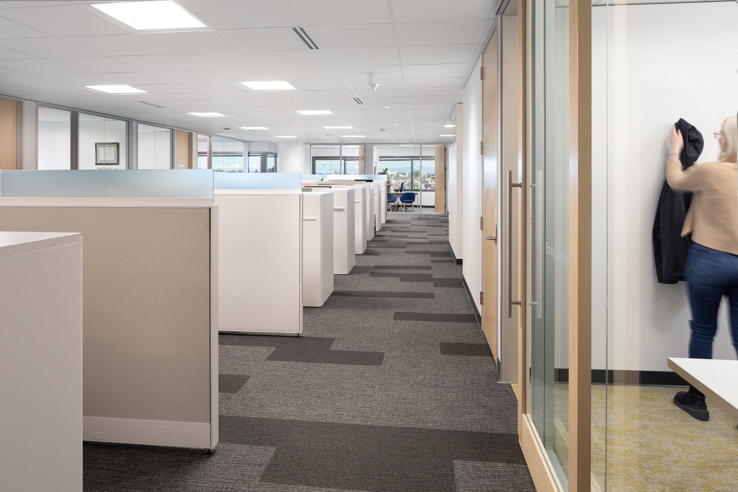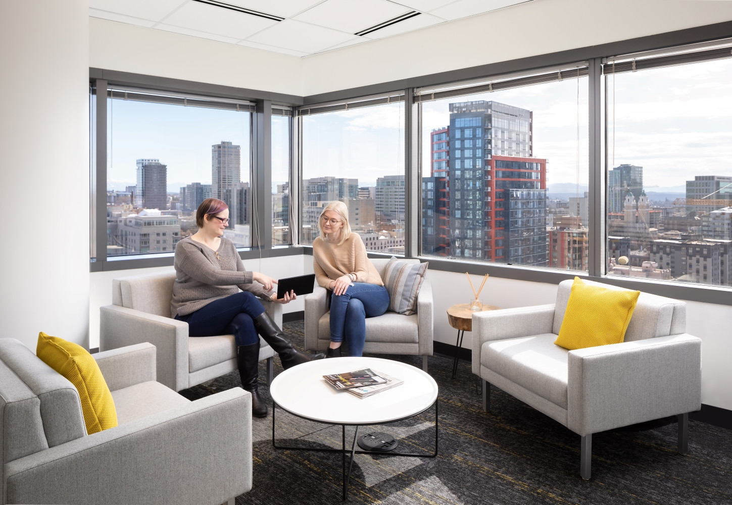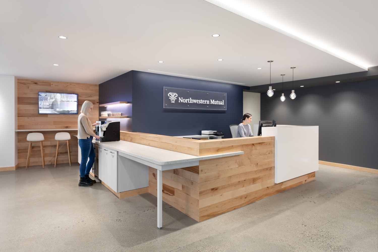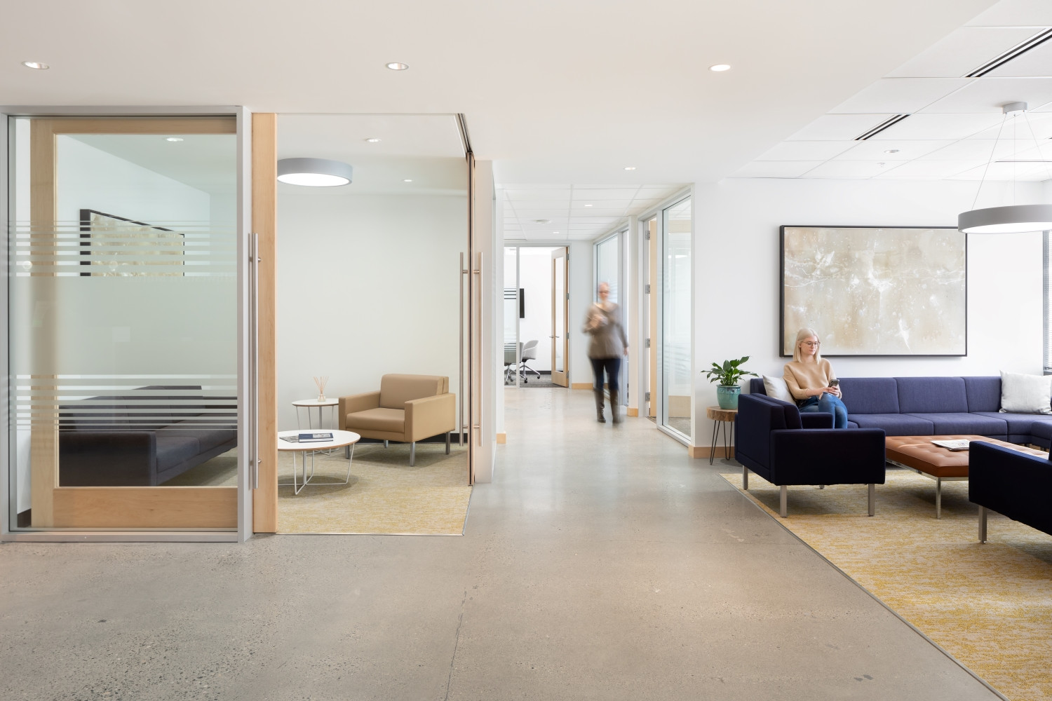 The design intent for this office was to create a resimercial NW inspired office that embodies the Pacific Northwest. This office thus utilizes neutral tones with wood accents to evoke the sense of going on a hike through one of the Pacific Northwest’s countless trails. This is then juxtaposed with high contrast areas, in the tenants’ branding colors, which is representative of the Larches seen throughout Washington such as in the enchantments.
