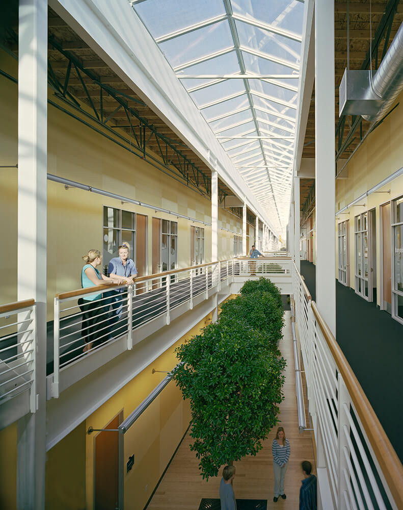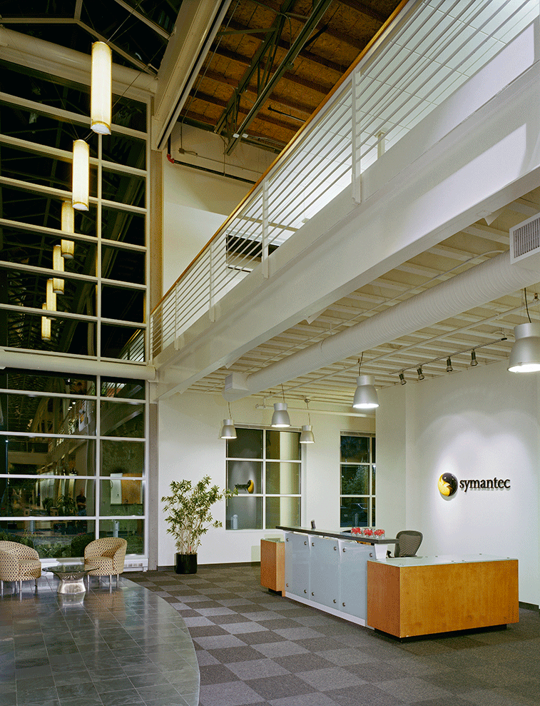 Symantec Corporation's office and call center facility was devised as a response to the organization's rapid growth, and consolidated the office to create a tighter project schedule. The 405,000 square-foot two-phased complex sits on 30 acres. Both phases were taken from site planning through construction in one year. Designed around daylight and openness, the resulting space is a unique two-story building with two offset masses connected by a central skylit spine.